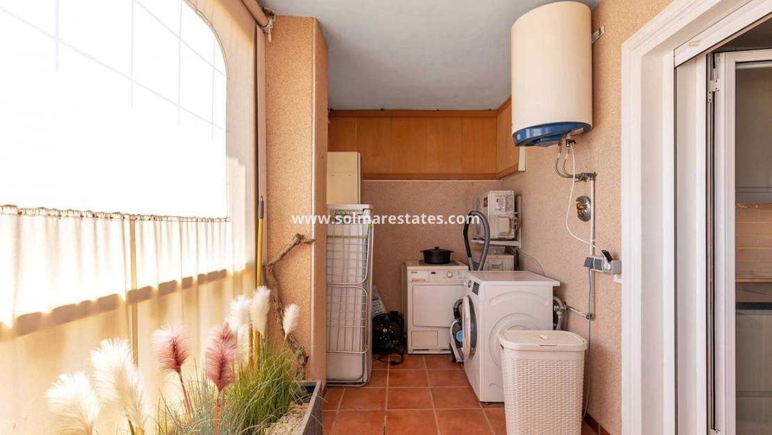 Upptäck denna eleganta takvåning i det välskötta Vista Azul-residenset, bara tre kilometer från stranden i Villamartin. Detta inflyttningsklara hem är designat för komfort och bekvämlighet och erbjuder två rymliga sovrum och två moderna badrum, allt på ett plan.