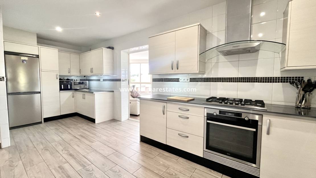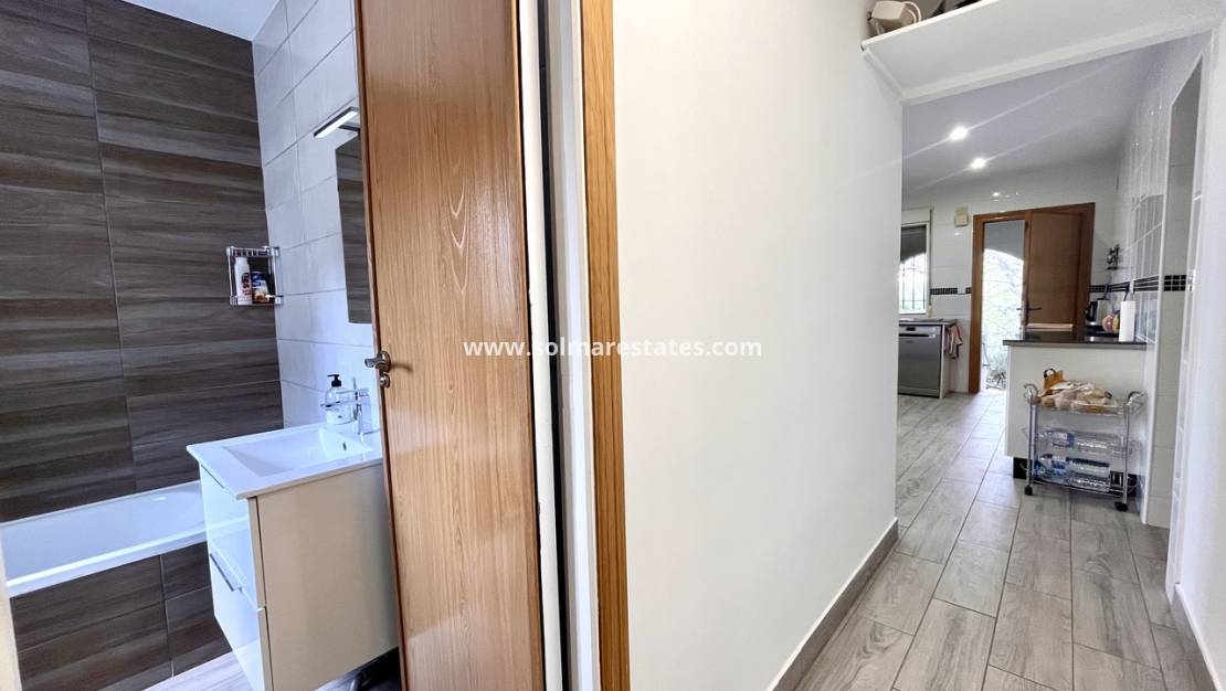 Inbäddat i hjärtat av Pinar de Campoverde kombinerar denna fristående villa rymd, komfort och fantastiska naturliga omgivningar. Den har tre sovrum och tre badrum, varav ett ensuite, plus en rymlig källare med eget badrum, perfekt för gäster eller extra boyta. Det öppna köket sträcker sig över till ljusa vardagsrum, och vinterträdgården erbjuder panoramautsikt över det frodiga landskapet. Utomhus kan du njuta av ett privat solarium och plats för en pool för att njuta av medelhavssolen.