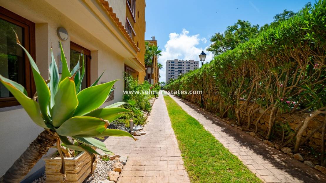Denna bekväma lägenhet med 2 sovrum och 1 badrum ligger i det gated communityt Parque Recoleta i Punta Prima, bara några steg från Medelhavet . Fastigheten har ett mysigt öppet kök och ett vardagsrum med matplats som leder ut till en terrass med utsikt över havet och de gemensamma utrymmena .