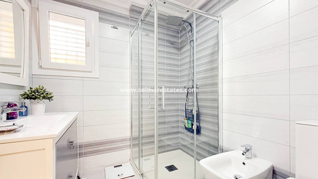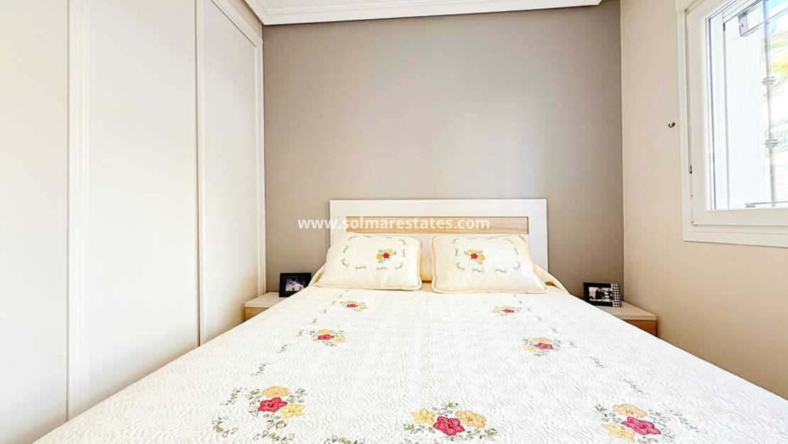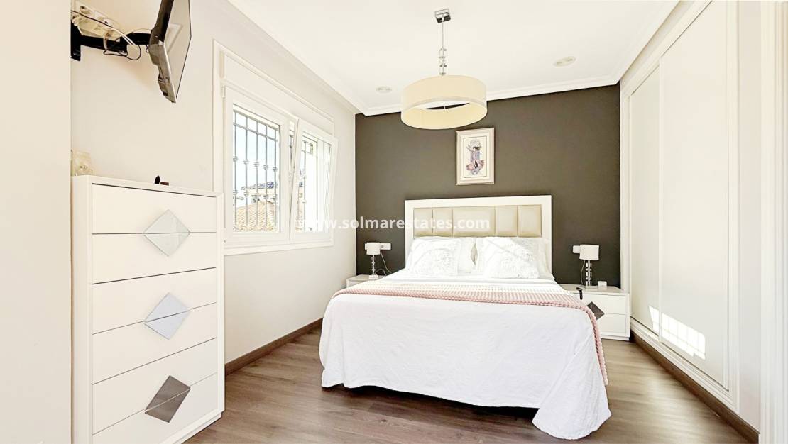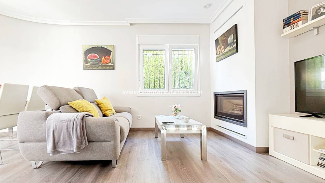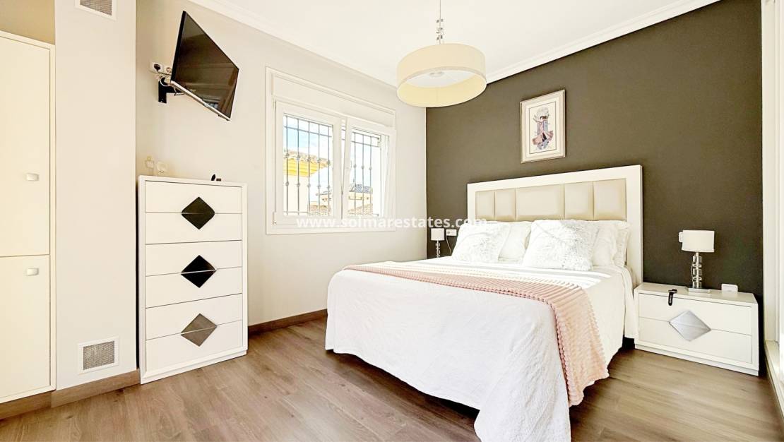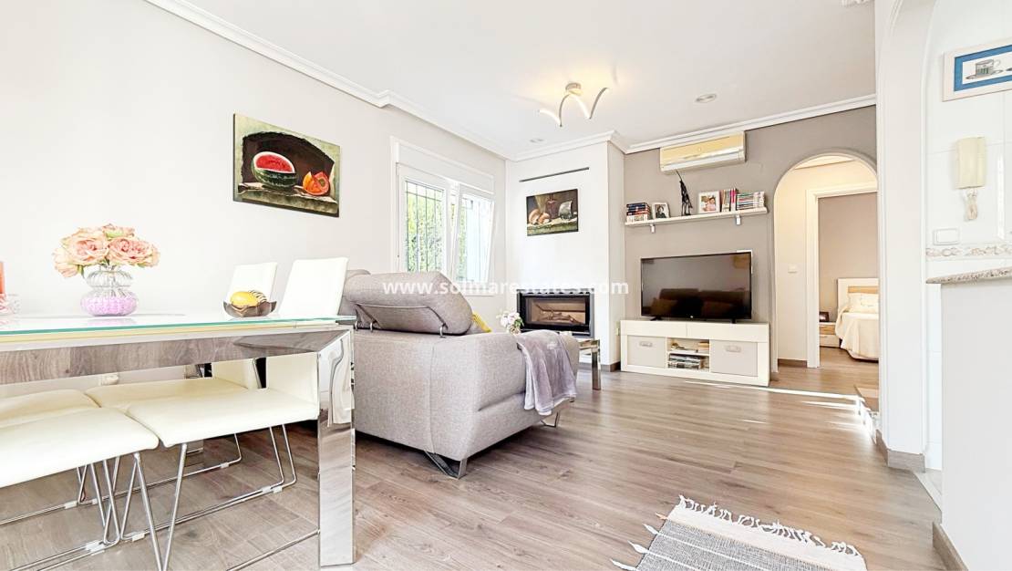 Utanför villan har en privat tomt med parkeringsplats och förråd, vilket ger extra bekvämlighet. Det gated communityt har attraktiva gemensamma utrymmen och en pool, perfekt för att njuta av medelhavsklimatet.
