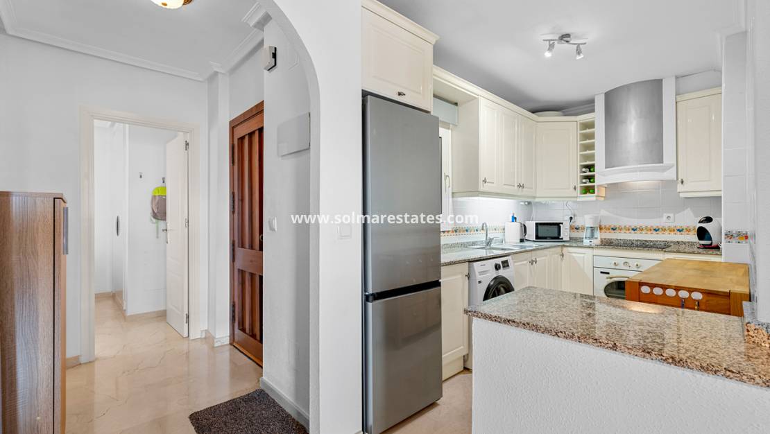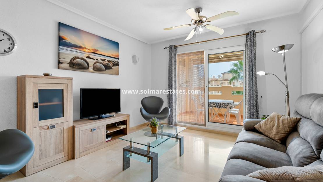 Orihuela Costa är ett pulserande område, populärt året runt för sina fritidsanläggningar och närhet till toppgolfbanor inklusive Campoamor, Las Ramblas och Villamartín, vilket gör denna lägenhet perfekt för semester, permanent boende eller uthyrningsinvestering.