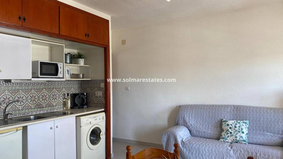 Denna fantastiska hörnfastighet med ett sovrum är perfekt som ett perfekt semesterboende och är fullt möblerad. Lägenheten ligger i Las Carolinas-området i El Galan och erbjuder öppen planlösning med pentry, ett rymligt sovrum med dubbelsäng och ett separat duschrum. En terrass på framsidan har utsikt över de vackert anlagda trädgårdarna.