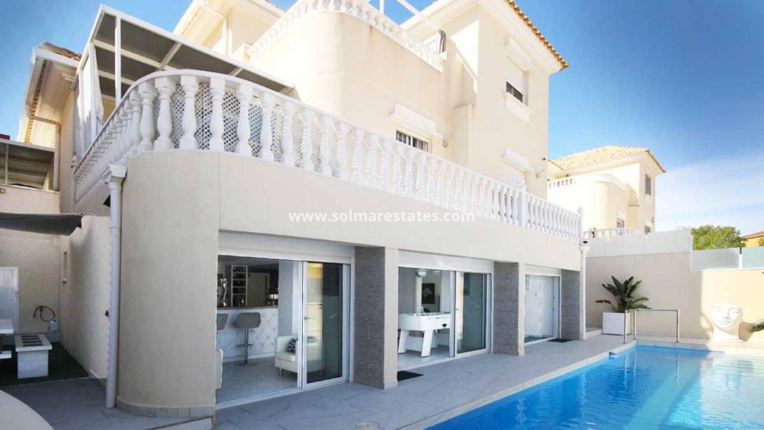 Belägen bara några minuter från fyra toppgolfbanor, fantastiska stränder, La Zenia Boulevard och både Alicante och Murcia flygplatser, är denna villa idealisk som permanent boende, semesterbostad eller investering i premiumuthyrning.