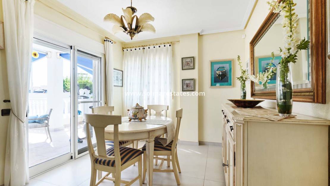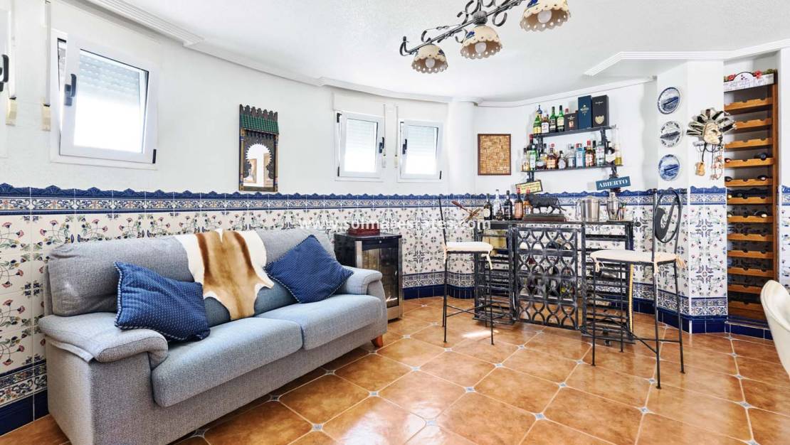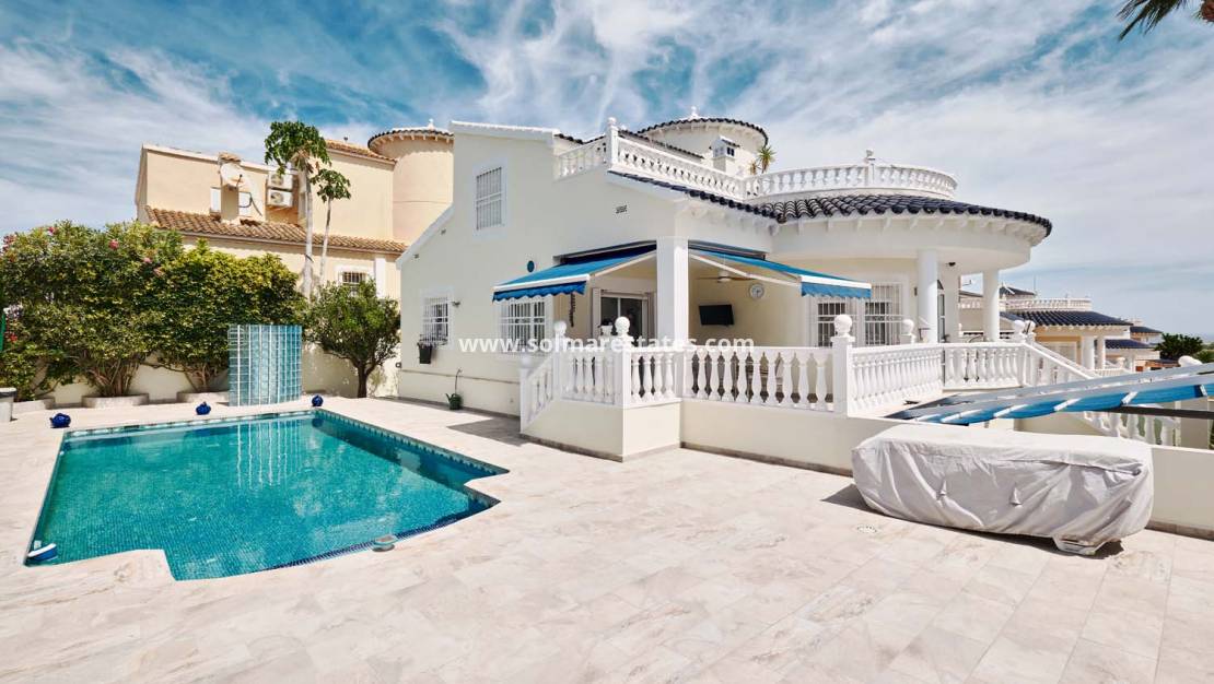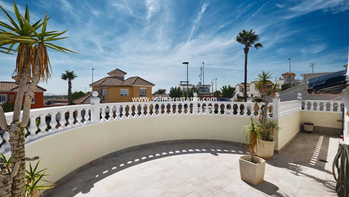 Fantastisk möjlighet att köpa detta oklanderligt presenterade familjehem med 4 sovrum och 4 badrum, fördelat på tre rymliga våningar och komplett med en privat pool. Beläget i ett lugnt, högt läge i den eftertraktade byn Pinar de Campoverde, bara 2 minuters promenad från lokala barer, restauranger och butiker, och bara 10 km från de populära blåflaggade stränderna Torre de la Horadada och Mil Palmeras.