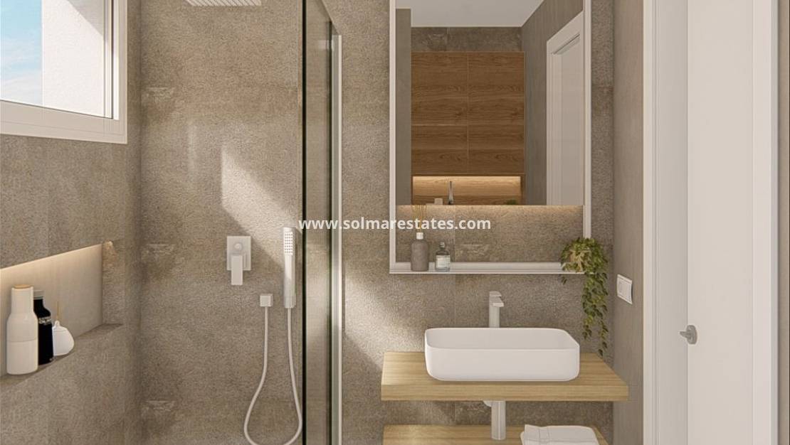 NYBYGGT BOSTADSOMRÅDE I EL RASO, GUARDAMAR DEL SEGURA Nybyggd privat bostadsområde med lägenheter i El Raso, Guardamar del Segura. Komplexet består av 135 bostäder med 2 eller 3 sovrum i block med 3 eller 5 våningar plus solarium, utformade på ett minimalistiskt sätt och med höga kvalitetsstandarder, dess moderna arkitektur harmonierar med våra stora öppna ytor, naturen och simbassängerna och erbjuder en unik och fridfull atmosfär. Vackra bostadskomplex, inklusive en glasad GYM-Spa-avdelning med utsikt över grönområden, simbassänger och från sin terrass med utsikt över saltlagunen La Mata, paddeltennisbana osv. Möbelpaket ingår i priset. Parkeringsplats ingår i priset. Utvecklingen är belägen på en unik och oöverträffad tomt, som gränsar till det naturliga landskapet i saltlagunen, njut av dess biologiska mångfald och unika miljö, i El Raso de Guardamar del Segura, med alla typer av tjänster och bekvämligheter och nära till de bästa stränderna i Medelhavet. Samtidigt kan du tack vare närheten till stranden El Moncayo ta en cykeltur och njuta av Costa Blancas bästa klimat. Dessutom och tack vare de fem nivåerna i vissa av de block som utgör bostadsområdet, alla i söderläge, inkluderar vi i våra lyxiga takvåningar, fullt utrustat kök på solariumet, utomhusdusch (varmt/kallt vatten) och jacuzziområde, för att fullborda den unika upplevelsen av att bo framför en unik och oöverträffad naturmiljö. El Raso är en del av Guardamar del Segura. Guardamar del Segura är en stad som ligger på Costa Blanca södra. Med sin 11 kilometer långa naturstrand och sin stora tallskog. Guardamar del Segura har en stor hamn med aktiviteter under hela året, den har ett stort sportcenter med paddeltennis, tennis, fotboll och en stor uppvärmd pool som fungerar året runt. Här finns också ett bibliotek där det finns gratis wifi och datorer. Guardamar del Segura ligger bara 20 km från flygplatsen Alicante - Elche (El Altet), där det finns många flygningar varje dag med förbindelser till de största europeiska städerna, på grund av efterfrågan på turister på Costa Blanca.