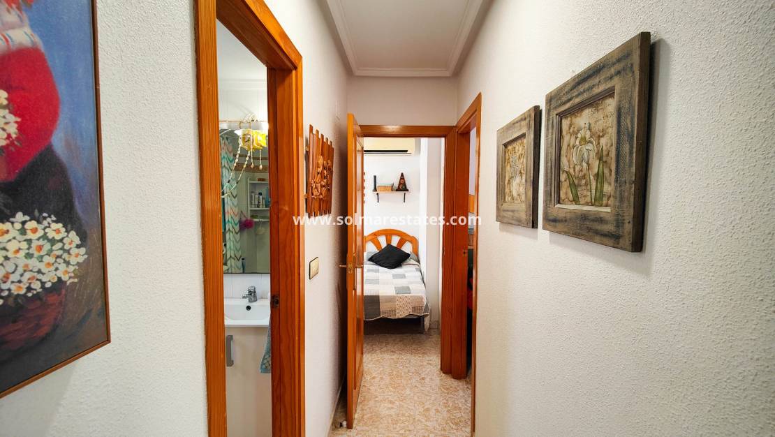 Fastigheten består av ett vardagsrum med matplats och integrerat kök , tre sovrum och ett badrum med fönster , vilket ger en bekväm och praktisk planlösning. Terrassen framtill är perfekt för att njuta av morgonsolen och utsikten över de vackert underhållna gemensamma utrymmena, medan takterrassen erbjuder fri panoramautsikt , perfekt för avkoppling eller umgänge.