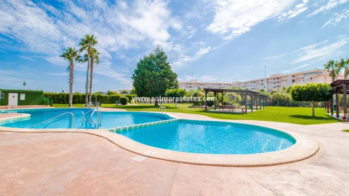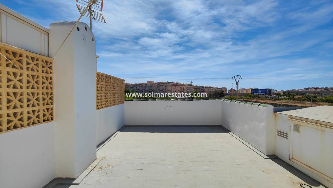 Denna lägenhet på översta våningen erbjuder en fantastisk möjlighet i den populära Urb. Parque de las Naciones i Torrevieja, med en privat takterrass och en stor terrass mot öster med utsikt över den gemensamma poolen .
