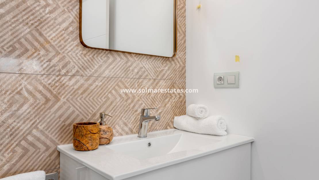 Denna lägenhet på bottenvåningen med en generös privat trädgård erbjuder en sällsynt möjlighet att äga ett elegant, inflyttningsklart hem i ett blomstrande område på Costa Blanca.