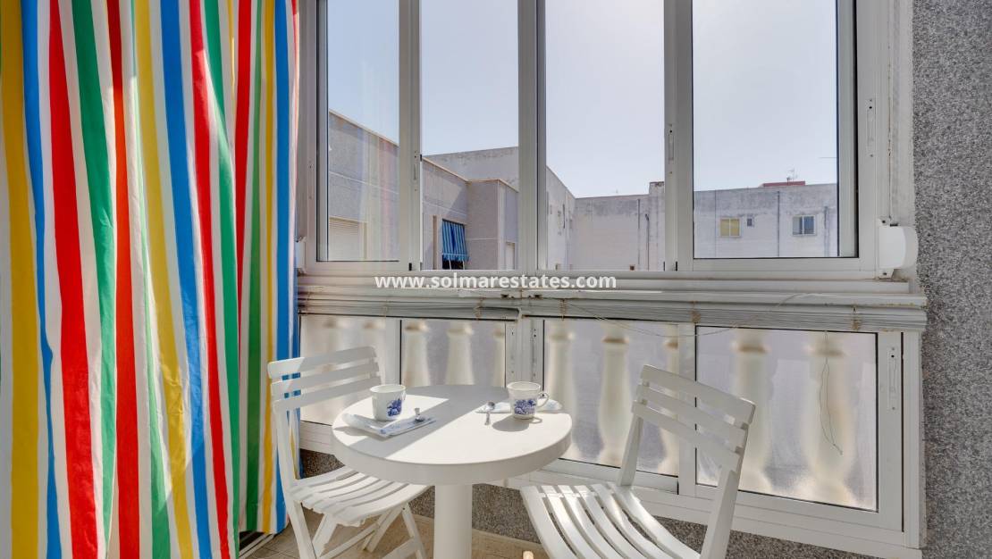 Inuti har studion ett modernt, fullt utrustat kök med öppen planlösning, utformat för praktisk och trevlig matlagning. Dess strategiska läge placerar dig bara 400 meter från de gyllene lokala stränderna, vilket ger enkel tillgång till havet och den perfekta miljön för soldränkta dagar på Costa Blanca.