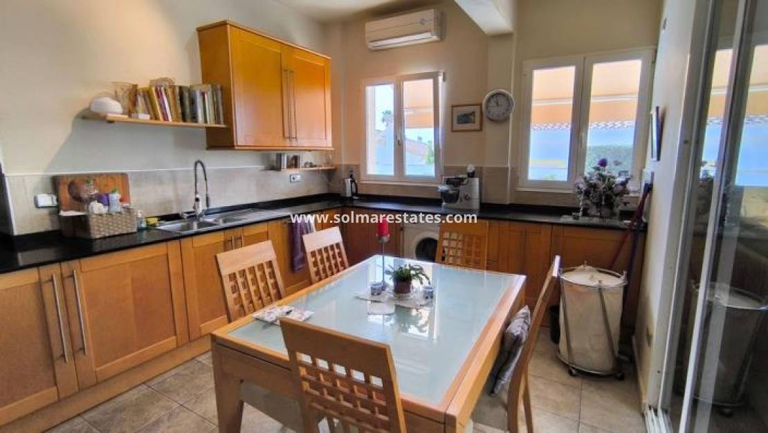 Köket är exceptionellt rymligt och ett av de största du hittar i en traditionell spansk villa. Det passar perfekt för familjer eller alla som tycker om att laga mat och umgås. Det separata vardagsrummet har en mysig braskamin, medan luftkonditionering i hela fastigheten garanterar komfort året runt.