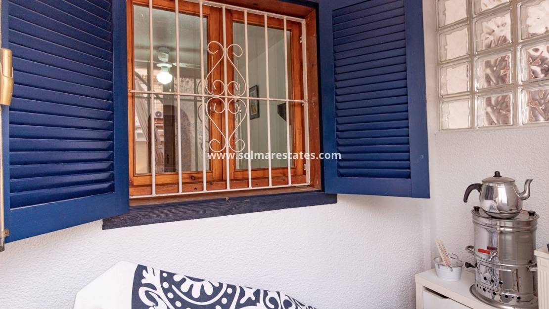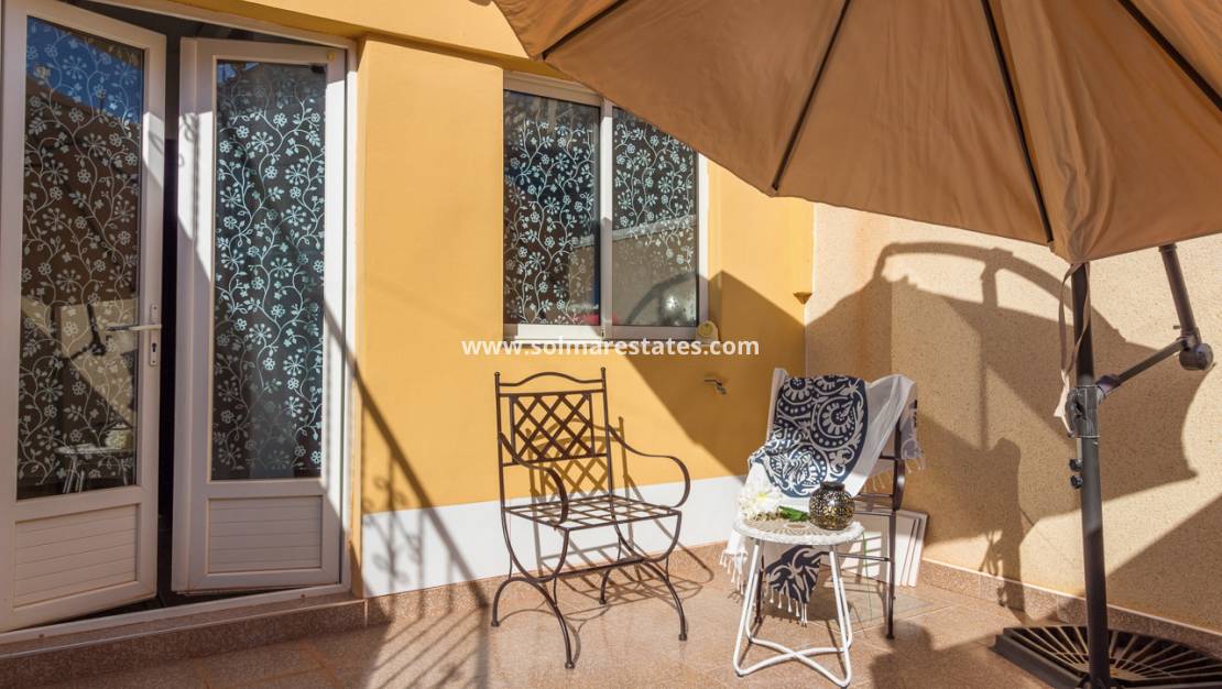 Denna välpresenterade lägenhet i maisonettestil på bottenvåningen är idealiskt belägen i det eftertraktade El Chaparral-området, med enkel tillgång till lokala bekvämligheter, stränderna och Torreviejas hamn.