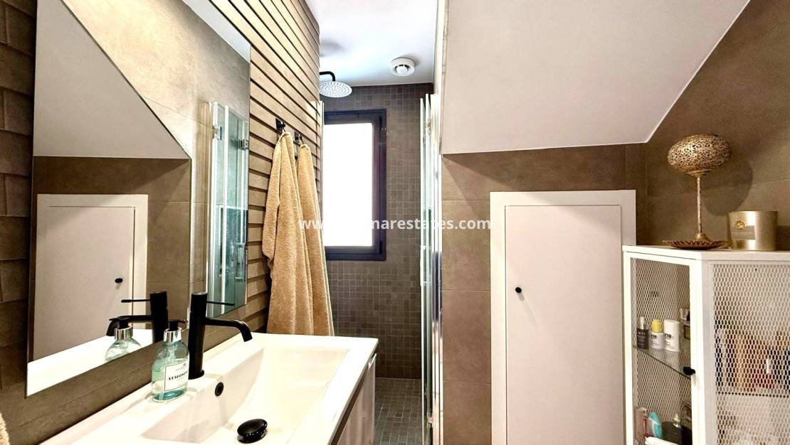 Bottenvåningen har även ett lyxigt sovrum med eget badrum, samt en separat tvättstuga för extra bekvämlighet.
