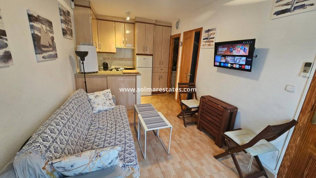 Denna förtjusande lägenhet i det populära Lago Jardin II-området i Torrevieja erbjuder ett kompakt men praktiskt hem designat för bekvämt boende. Beläget i ett välskött område med utmärkta gemensamma faciliteter, kombinerar den bekvämlighet med en lugn miljö.