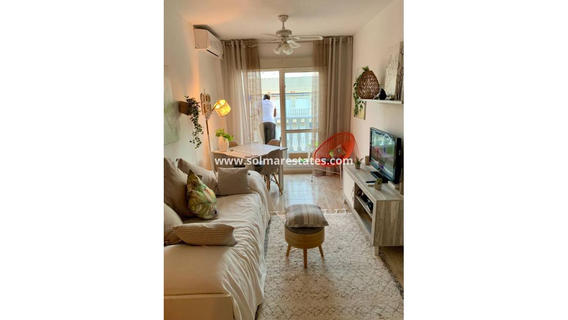 Fastigheten erbjuder ett bekvämt och praktiskt boende, perfekt för vardagsbruk eller som semestertillflyktsort. Vid inträdet välkomnas du in i ett ljust, öppet vardagsrum, matsal och sovrum, fyllt med naturligt ljus och utformat för att skapa en avkopplande och inbjudande atmosfär. Altandörrar leder ut till en liten men funktionell balkong i söderläge som njuter av solsken hela dagen och erbjuder direkt utsikt över den stora gemensamma poolen.