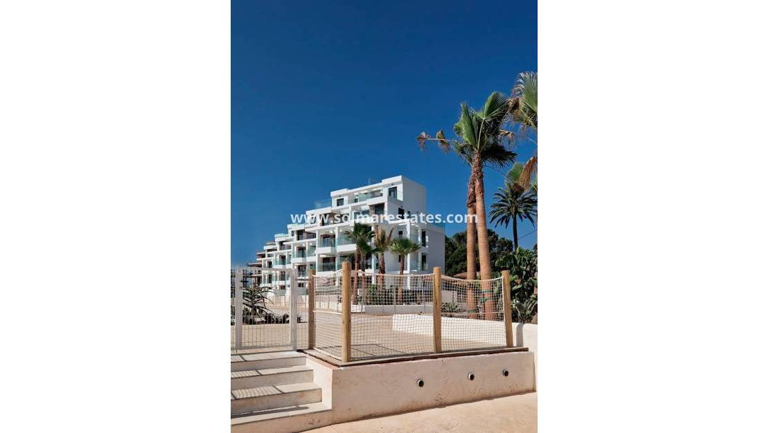 MEDELHAVSBOSTAD NÅGRA METER FRÅN HAVET Exklusivt komplex av medelhavsbyggande några meter från havet. På stranden, framför stranden L´Estanyo (7 km från centrum). Lägenheter och takvåningar med två och tre sovrum, alla med havsutsikt. Magnifika gemensamma ytor med en stor trädgård och två pooler, en för barn. Med ett oslagbart läge, i området känt som L´Estanyo som ger sitt namn till sin strand, med lugna vatten, ett omfattande område med gyllene sand och omgivet av alla faciliteter och tjänster, såväl som fritids- och restaurangställen.