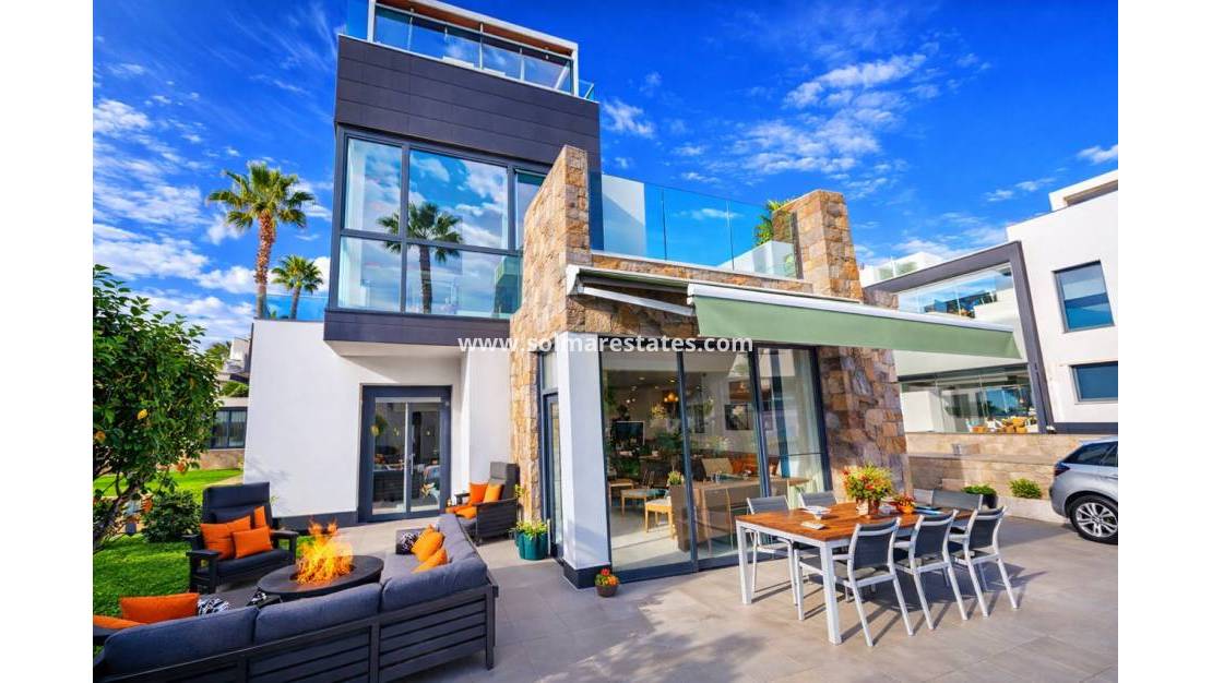 Detta vackert designade moderna parhus erbjuder ett elegant boende med öppen havsutsikt från en hög och lugn miljö. Med utsikt över en av två oklanderliga gemensamma pooler och beläget bara några steg bort, kombinerar fastigheten komfort, stil och praktiskhet i lika hög grad.