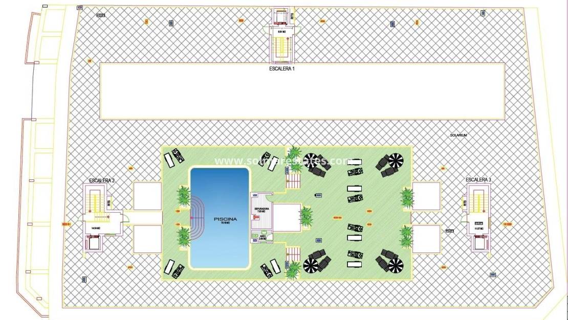Moderna nybyggda lägenheter i centrum av San Miguel de Salinas Modernt boende i en hälsosam medelhavsmiljö Detta nya bostadsområde ligger i den charmiga staden San Miguel de Salinas, bara 10 km från Medelhavet, och erbjuder en perfekt balans mellan modern komfort och naturlig omgivning. Området är känt för sina närliggande saltsjöar och sitt exceptionella mikroklimat, som anses vara ett av de hälsosammaste i Europa. Denna fridfulla men livliga stad gör det möjligt för invånarna att njuta av den autentiska medelhavslivsstilen samtidigt som de har gångavstånd till butiker, restauranger, stormarknader och alla nödvändiga tjänster. San Miguel de Salinas ligger något inåt landet på Costa Blanca South och erbjuder öppen utsikt, frisk luft och enkel tillgång till stränder, golfbanor och shoppingområden. Snygga lägenheter designade för komfort och effektivitet Projektet består av två moderna byggnader som skiljs åt av en gemensam trädgård. Totalt finns 56 moderna lägenheter med 1, 2 eller 3 sovrum, alla med egen terrass. Varje bostad har utformats med komfort, estetik och energieffektivitet i åtanke, med högkvalitativa material och moderna isoleringssystem. Varje lägenhet har: Pansrad entrédörr Badrum med tvättställ Förinstallation för luftkonditionering Energiklass A Lägenheternas layout och orientering säkerställer naturligt ljus under hela dagen, vilket skapar ljusa och välkomnande interiörer som är idealiska för både permanent boende och semesteranvändning. Exceptionella gemensamma utrymmen för avkoppling och socialt liv Det gemensamma utrymmet på bottenvåningen är utformat som det sociala hjärtat i området, omgivet av anlagda trädgårdar, sittplatser, cykelparkering och en lekplats. Det är en idealisk mötesplats för boende i alla åldrar. På taket väntar ett imponerande 350 m2 stort fritidsområde. Detta utrymme inkluderar en 70 m2 stor pool med separat barnbassäng, pergolor, solstolar och skuggiga områden, där boende kan koppla av medan de njuter av panoramautsikten. Taket är lättillgängligt med en av de tre hissarna och inkluderar sanitära faciliteter för extra komfort. Utmärkt läge nära viktiga sevärdheter Medelhavsstränder 10 km Zenia Boulevard Shopping Center 9 km Villamartin Golf 6 km Las Colinas Golf 8 km Torrevieja Marina 12 km Alicante flygplats 60 km Murcia Corvera flygplats 55 km En smart investering i södra Costa Blanca Detta bostadskomplex kombinerar modern arkitektur, högkvalitativa ytbehandlingar och ett utmärkt centralt läge, vilket gör det till ett utmärkt val för boende, semester eller uthyrningsinvestering. Kontakta oss idag för mer information eller för att boka en visning av dessa moderna lägenheter i San Miguel de Salinas.