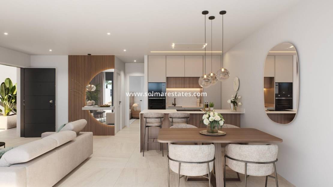 Moderna nybyggda villor med privat pool i San Pedro del Pinatar Modern design och högsta livskvalitet Upptäck den tredje fasen av detta exklusiva bostadsprojekt i San Pedro del Pinatar, där modern arkitektur möter komfort och funktionalitet. Dessa 14 parhusvillor är designade i minimalistisk stil med högkvalitativa ytbehandlingar och erbjuder en elegant och sofistikerad boendeupplevelse på Costa Calida. Varje villa har 3-4 rymliga sovrum, 3 badrum, privat pool, terrasser och en privat trädgård, vilket skapar den perfekta miljön för avskildhet, avkoppling och medelhavsliv utomhus. San Pedro del Pinatar är en av de mest eftertraktade städerna i Mar Menor-området, känt för sina naturliga saltsjöar, lugna stränder och behagliga klimat året runt, vilket gör det idealiskt för både permanent boende och semesteranvändning. Öppen planlösning utformad för det moderna livet Villorna är omsorgsfullt fördelade med ett öppet kök som ansluter till ett ljust vardagsrum och matrum. Stora fönster i vardagsrummet med motoriserade persienner ger direkt tillgång till poolområdet och låter naturligt ljus flöda in i de inre utrymmena. Viktiga egenskaper för varje fastighet inkluderar: 3 sovrum med inbyggda garderober 3 fullt utrustade badrum med tvättställ, speglar och duschväggar Möblerat kök med Balay-vitvaror Privat pool och trädgård LED-belysning inomhus och utomhus Terrasser på första våningen och valfritt solarium på taket Parkeringsplats på tomten Aerotermiskt system för varmvatten Solcellspaneler för förbättrad energieffektivitet Förinstallation av luftkonditionering Dessa bostäder är utformade för att kombinera hållbarhet, komfort och modern stil i varje detalj. Utmärkt läge nära stränder och service San Pedro del Pinatar ligger mellan Mar Menor och Medelhavet och är ett paradis för strandälskare och vattensportentusiaster. Staden erbjuder en livlig småbåtshamn, naturliga lerbad, butiker, restauranger, idrottsanläggningar och utmärkta tjänster året runt. Stränderna vid Mar Menor 3 km Medelhavets stränder 5 km Dos Mares shoppingcenter 5 km Lo Romero Golf 10 km Roda Golf 15 km Murcia Corvera flygplats 30 km Alicante flygplats 80 km San Pedro marina 4 km Ett idealiskt hem för livsstil och investering Tack vare sitt läge, sin design och sina energieffektiva funktioner är dessa villor ett utmärkt val som permanentbostad, semesterbostad eller uthyrningsinvestering i ett av de mest attraktiva områdena på Costa Calida. Kontakta oss idag för mer information eller för att boka en visning och säkra din nya villa i San Pedro del Pinatar.