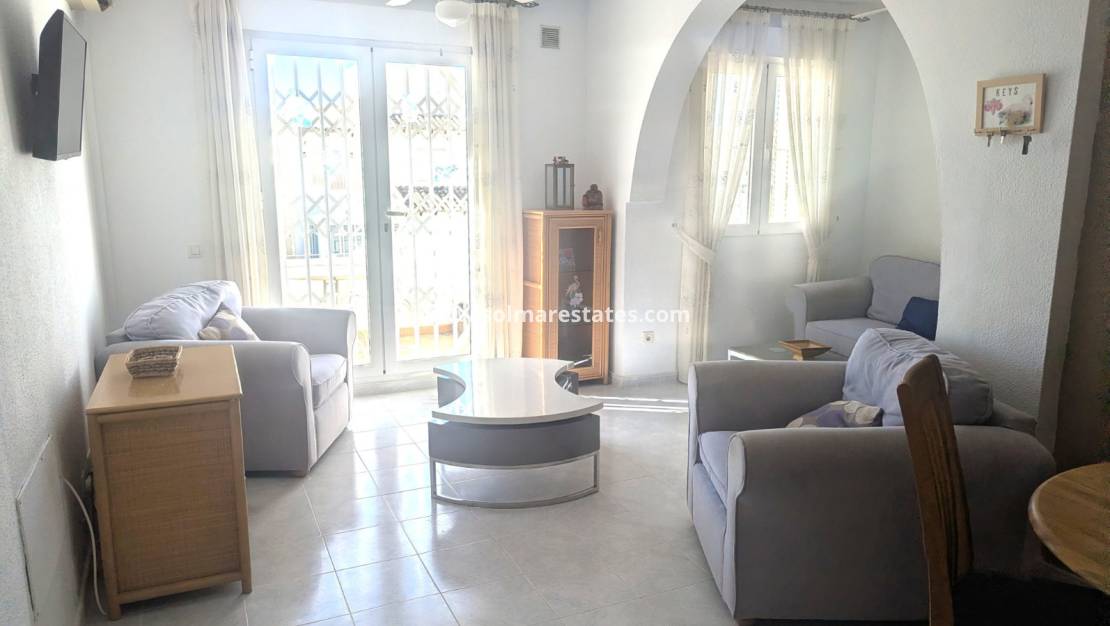 Lägenheten har ett ljust vardagsrum och matplats i öppen planlösning med luftkonditionering i både vardagsrummet och sovrummet. Från vardagsrummet går du ut på en privat terrass i söderläge – perfekt för att njuta av medelhavssolen, äta utomhus eller koppla av med kvällsdrinkar.