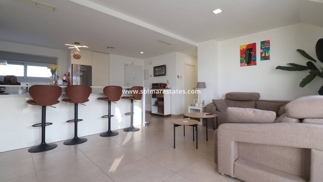 Denna välskötta takvåning kombinerar komfort, utomhusliv och ett utmärkt läge i ett av områdets mest eftertraktade golfområden.