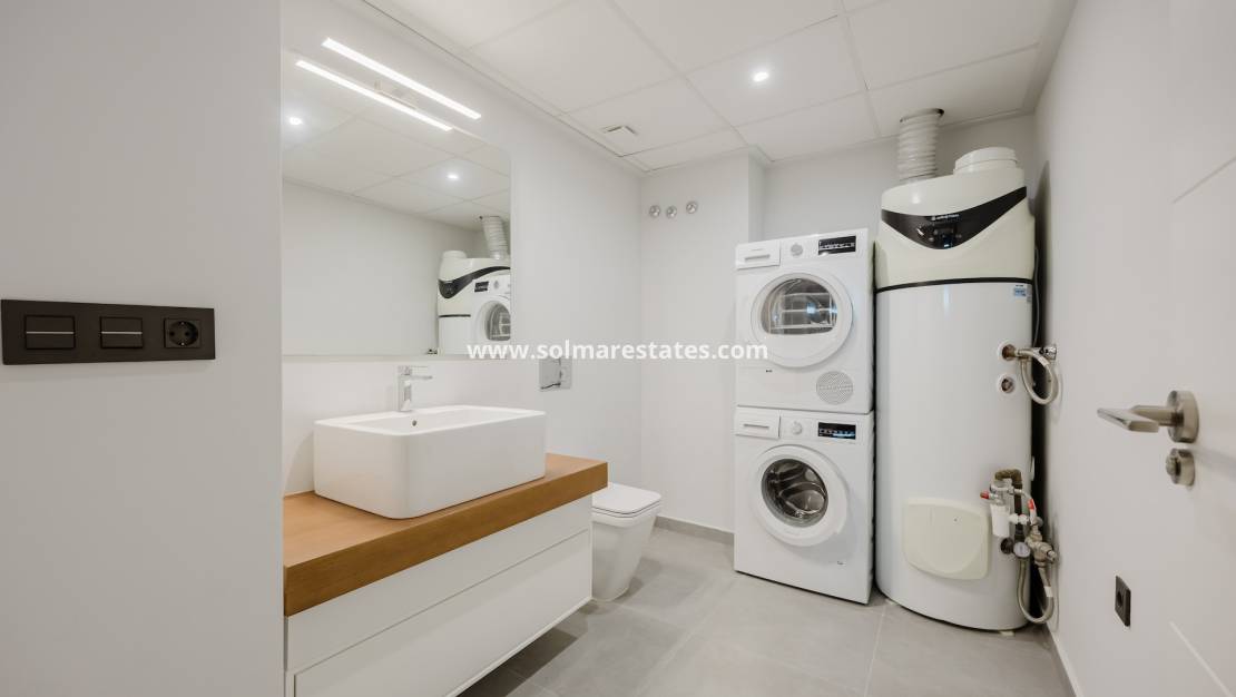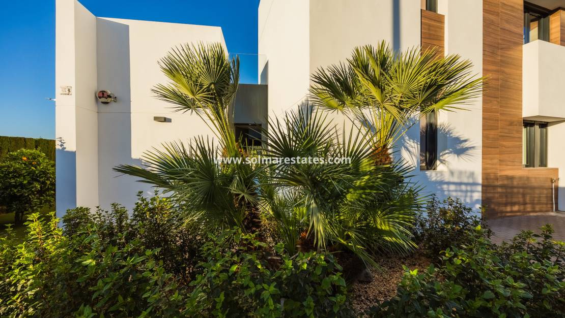 Ytterligare funktioner inkluderar Mitsubishi Electric luftkonditionering, larmsystem, elektriska jalusier, höghastighetsfiberinternet, privat parkering, dubbel fram- och bakåtkomst och inga samfällighetsavgifter. Villan ligger inom gångavstånd från restauranger, butiker, spa-anläggningar, golfakademi, tennis- och padelklubb, och bara 30 minuter från Alicantes flygplats.