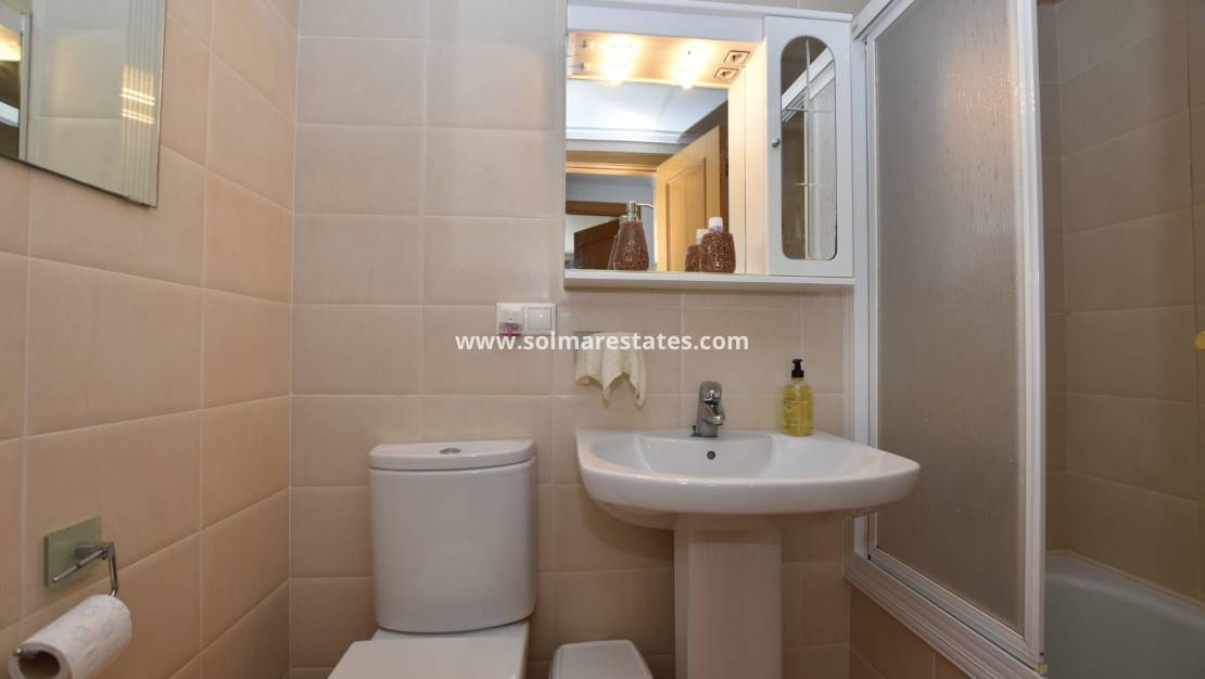 Bostaden har enkel tillgång från bottenvåningen och ligger i ett lugnt och välskött område. De boende har tillgång till en gemensam pool, privat parkeringsplats och ett förråd.