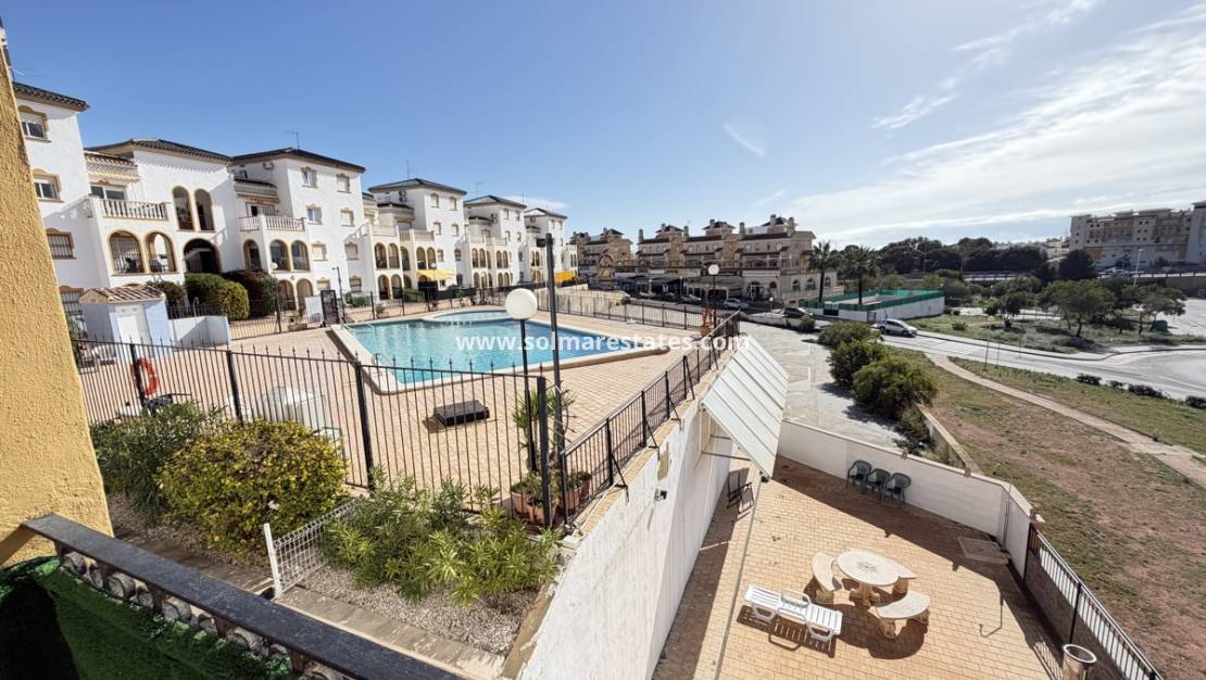 Denna charmiga lägenhet på första våningen i söderläge är idealiskt belägen i det populära Molino Blanco-området i La Zenia och erbjuder den perfekta blandningen av komfort, bekvämlighet och kustliv.