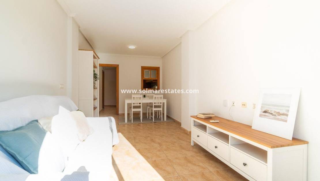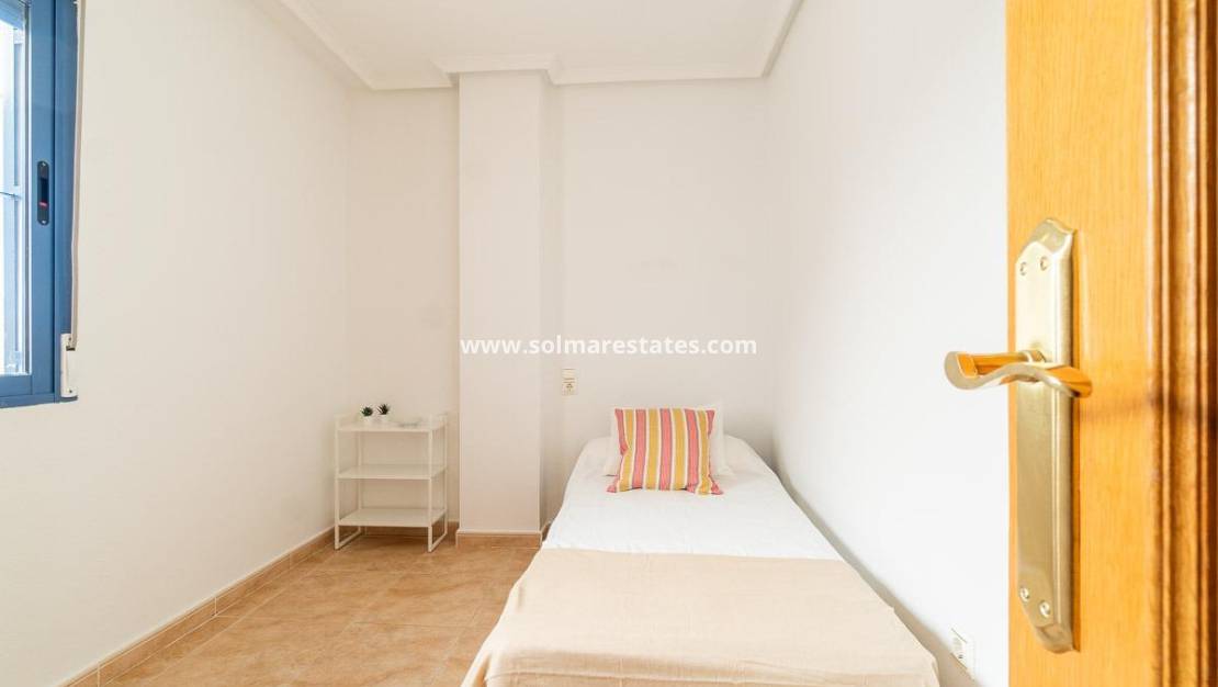 Upptäck denna fantastiska penthouse mitt i Torrevieja, på den välkända Calle La Paz, precis bredvid stadshuset. En unik bostad som utmärker sig med sitt naturliga ljus och sitt fantastiska läge. Endast 620 meter från havet, stränderna och strandpromenaden, vilket ger den perfekta kombinationen av stadsliv och närhet till havet.~~Den har två stora terrasser som vetter mot två olika gator, med vacker öppen utsikt över staden, vilket gör varje rum varmt och ljust. Dessutom finns ett privat takterrass-solarium, perfekt för solbad, sociala tillställningar eller avkoppling utomhus.~~Planlösningen är utformad för daglig komfort: 105 m2 byggyta, tre dubbelrum, två välutrustade badrum och ett trevligt vardagsrum. Bostaden säljs möblerad och med vitvaror, redo att flytta in utan extra investering.~~Läget är oslagbart: omgivet av service, lekplatser, köpcentrum, skolor, busshållplatser och närliggande sjukhus – idealiskt både för permanentboende och investering i ett av Torreviejas mest eftertraktade områden.~~En perfekt möjlighet för den som söker en charmig penthouse med öppen utsikt, utomhusutrymmen och gångavstånd till havet och strandpromenaden. Kom och upptäck den!