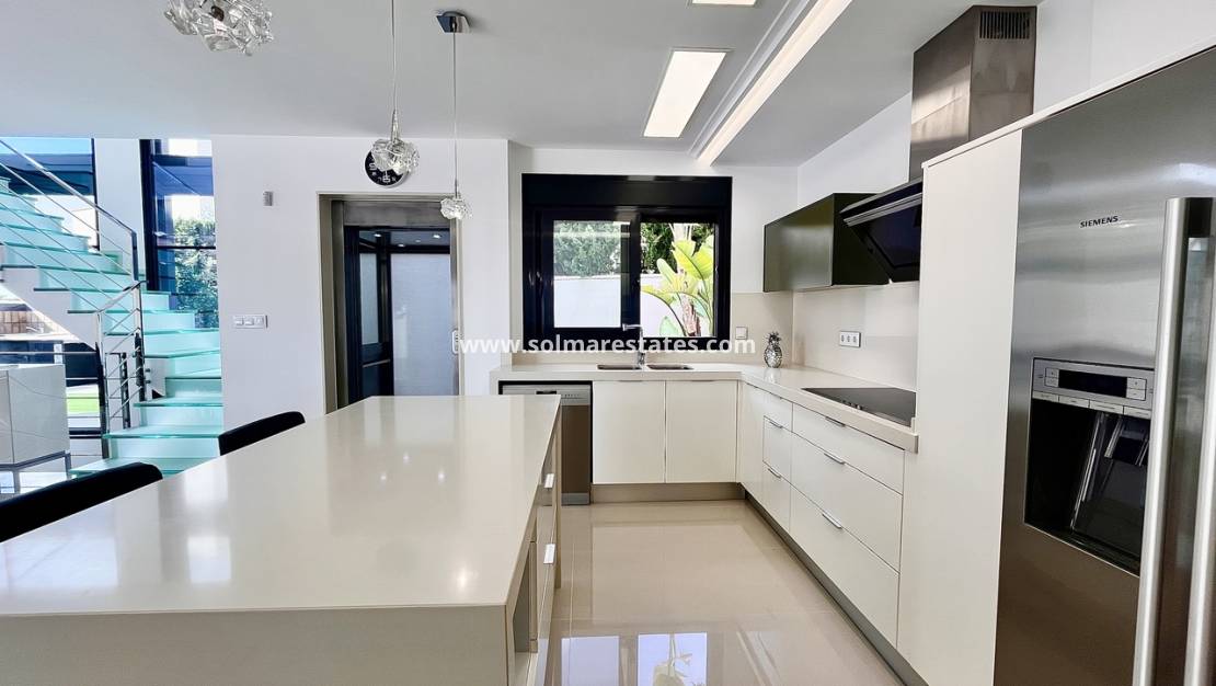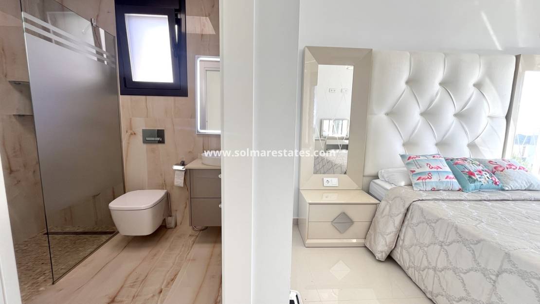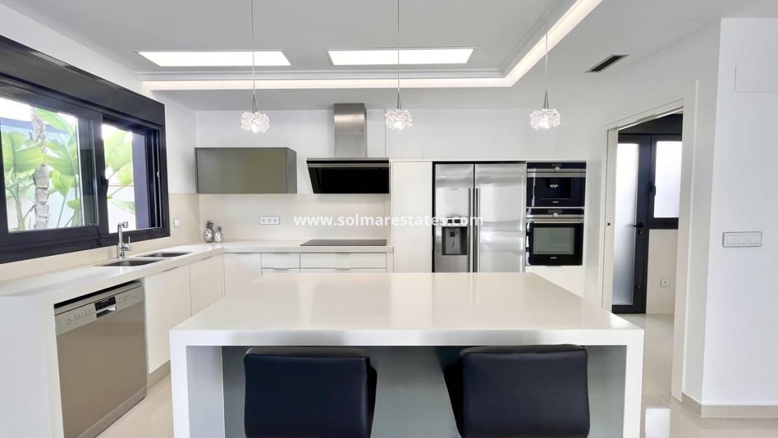Välkommen till denna exceptionella nybyggda lyxvilla på Residencial Bellavista, San Miguel de Salinas, som erbjuder en harmonisk blandning av modern design och hisnande vyer. Med totalt 5 sovrum och 4 badrum, sträcker sig denna noggrant utformade fastighet över två våningar och en källare, tillgänglig via en bekväm hiss och en fantastisk glastrappa med innerbelysning.