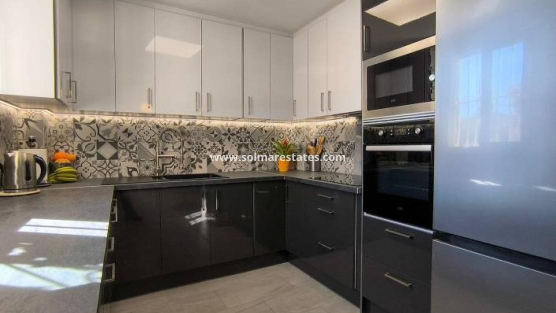 Gå in i bostaden via en rymlig terrass som sträcker sig runt huset till ett ljust vardagsrum och matplats, vilket skapar husets välkomnande hjärta. Infraröda värmepaneler och luftkonditionering säkerställer komfort året runt. Ett helt nytt modernt kök ligger precis intill det huvudsakliga vardagsrummet och kombinerar stil och praktiska egenskaper.