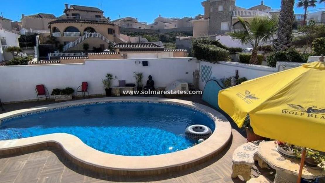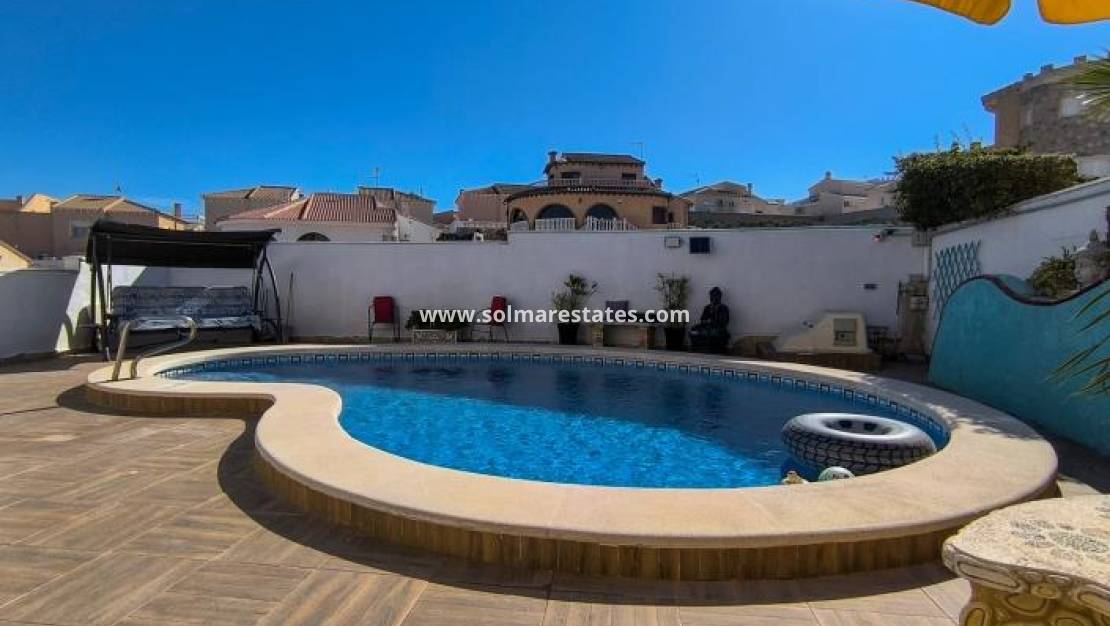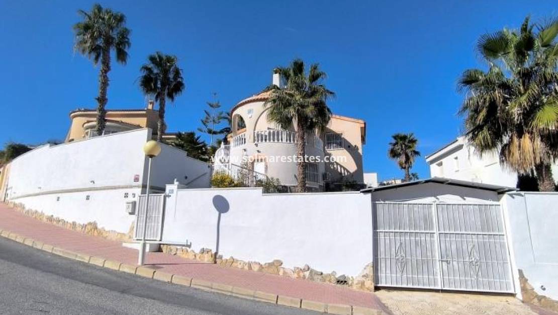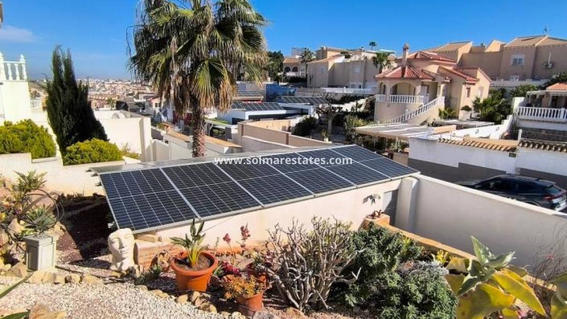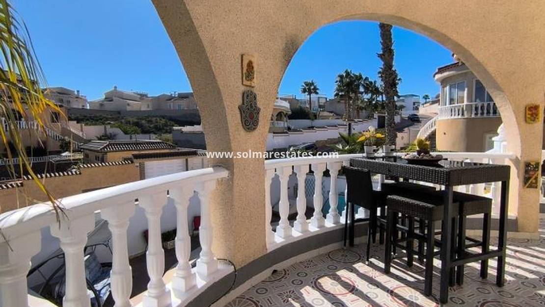 Denna fristående villa i Alhambra-stil i Ciudad Quesada med österläge erbjuder rymligt boende, fantastisk utsikt och utmärkta utomhusfaciliteter. Belägen på en generös tomt på 485 m² inkluderar fastigheten ett garage, en privat njurformad pool och breda terrasser med naturskön utsikt över omgivningarna och de avlägsna bergen.