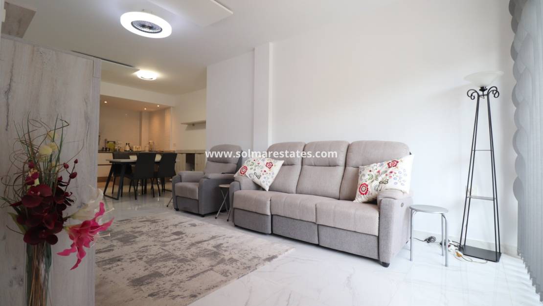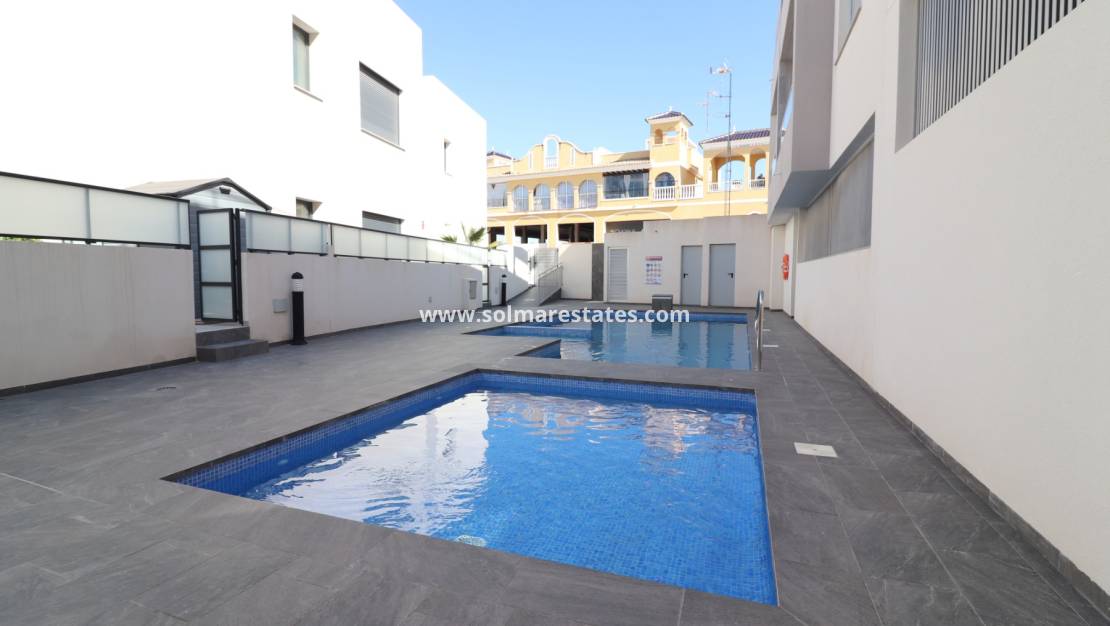 Ytterligare bekvämligheter inkluderar parkering i källaren, ett privat förråd och tillgång till en gemensam pool inom det välskötta komplexet. Denna lägenhet erbjuder en fantastisk möjlighet att njuta av en modern och bekväm livsstil i hjärtat av Costa Blanca Södra.