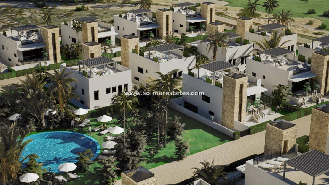 Nybyggda villor i Camposol Golf (Mazarrón-Murcia) med privat solterrass och källare Exklusiva villor i Camposol Golf Upptäck detta privata bostadsområde med 69 fristående villor beläget på en tomt i direkt anslutning till Camposol Golf i Mazarrón, Murcia. Anläggningen är utformad kring en stor grön oas i mitten med gemensam pool och anlagda trädgårdar, och erbjuder en lugn och trygg miljö som är perfekt för att njuta av den medelhavsinspirerade livsstilen. Läget kombinerar lugn med bekvämlighet, eftersom den närliggande byn El Saladillo erbjuder dagliga tjänster, butiker och lokala bekvämligheter inom kort avstånd. De vackra stränderna i Puerto de Mazarron ligger bara 14 km bort, vilket gör detta till ett utmärkt alternativ för både permanent boende och fritidshus. Moderna villor i ett plan med flexibla planlösningar Bostadsområdet erbjuder ett urval av moderna villor byggda i ett plan, tillgängliga med två eller tre sovrum. Alla bostäder har två badrum, varav ett är en suite, utformade med funktionalitet och komfort i åtanke. Varje villa ligger på en privat tomt från 300 m², vilket ger utomhusutrymme för avkoppling och umgänge. Fastigheterna har även ett privat solarium, vilket erbjuder ytterligare utomhusutrymme med fri utsikt över den omgivande golfbanan och landskapet. Källare och möjligheter till anpassning En viktig egenskap hos dessa villor är den rymliga källaren, som gör det möjligt för ägarna att anpassa utrymmet efter sina behov. Detta utrymme kan omvandlas till ett gym, förråd, hemmabio eller extra bostadsyta, vilket ger stor flexibilitet och mervärde. Villorna är utformade med en inre trappa som förbinder alla våningar, vilket säkerställer enkel tillgång mellan källaren, huvudbostadsytan och solterrassen på taket. Hög kvalitet och bekvämt boende Dessa nybyggda bostäder levereras med högkvalitativa ytbehandlingar och moderna detaljer. Köken är fullt möblerade och utrustade med vitvaror, medan badrummen är färdigställda med duschväggar och inredning. Ytterligare detaljer inkluderar förinstallation för luftkonditionering, inbyggda garderober, elektriska fönsterluckor och ett komplett LED-belysningspaket, vilket garanterar komfort och bekvämlighet från dag ett. Förstklassigt läge i Mazarron nära golf och kust Camposol är ett väletablerat bostadsområde känt för sin golfbana, avslappnade atmosfär och internationella gemenskap. Mazarron erbjuder ett brett utbud av tjänster, restauranger och fritidsaktiviteter, medan den närliggande kusten är känd för sina sandstränder och kristallklara vatten. Viktiga avstånd inkluderar Camposol Golf precis utanför dörren, byn El Saladillo 2 km, stränderna i Puerto de Mazarron 14 km, Mazarrons centrum 10 km, Murcia Corvera flygplats 35 km och staden Cartagena 40 km. Perfekt investerings- och livsstilsmöjlighet i Murcia Detta projekt erbjuder en utmärkt möjlighet att äga en modern villa i ett läge vid golfbanan med stor potential för anpassning och stark uthyrningspotential. Kontakta oss idag för att få mer information eller för att boka en visning och säkra din nya villa i Camposol-Mazarron.
