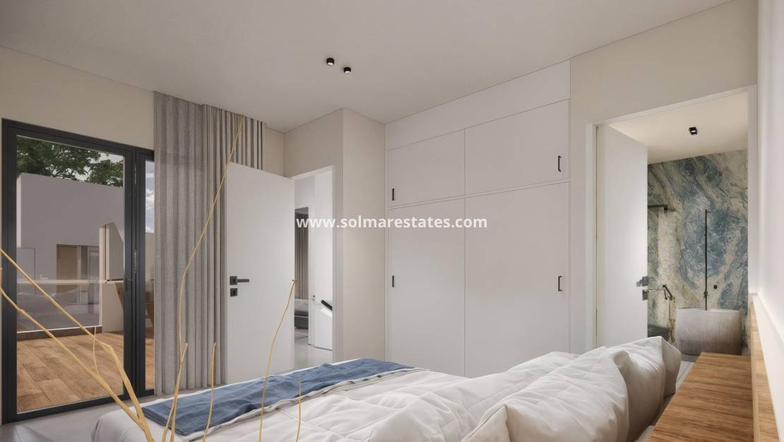Moderna, nybyggda villor i La Herrada Los Montesinos med privat pool Exklusivt bostadsprojekt i en lugn miljö Beläget i det prestigefyllda bostadsområdet La Herrada i Los Montesinos, erbjuder detta exklusiva projekt med 16 moderna villor avskildhet, komfort och en utmärkt livskvalitet. La Herrada är känt för sin lugna bostadsmiljö, närheten till vardagsbekvämligheter och sitt privilegierade läge mellan de berömda saltfälten i Torrevieja och La Mata. Det är en idealisk plats för dem som söker en avslappnad och hälsosam medelhavslivsstil i södra Costa Blanca. Modern design med optimerade interiörutrymmen Varje villa har 130 m² väl fördelad boyta på två våningar, utformad för att maximera naturligt ljus och funktionalitet. Fastigheterna är byggda på tomter från 250 m² och erbjuder rymliga utomhusområden som är perfekta för solbad, underhållning eller avkoppling vid den privata poolen. Bekväm planlösning över två våningar På bottenvåningen finns ett öppet vardagsrum med ett fullt integrerat kök och direkt tillgång till trädgården och poolområdet. På denna våning finns också två sovrum, ett komplett badrum och en praktisk tvättstuga. På övervåningen finns två rymliga sovrum, båda med eget badrum, varav ett är en-suite. Båda sovrummen har tillgång till en 28 m² stor öppen privat terrass. För dem som vill ha ännu mer utomhusutrymme finns ett solarium på taket tillgängligt mot en extra kostnad. Högkvalitativa ytbehandlingar och moderna funktioner Villorna har högkvalitativa ytbehandlingar såsom badrumsmöbler, speglar, duschväggar och golvvärme i alla badrum. Det finns förinstallation för luftkonditionering, en motoriserad ingångsport för fordon, privat parkering på tomten och gated tillgång till bostadsområdet via en privat intern väg. Utmärkt läge nära viktiga bekvämligheter och attraktioner Stränderna i Guardamar och Torrevieja ligger 9 km bort La Marquesa Golf, La Finca Golf och Vistabella Golf ligger mindre än 5 km bort Alicantes flygplats ligger 29 km bort Naturparker, saltfält, cykelvägar och vandringsleder i närheten Bo bekvämt i hjärtat av Costa Blanca Dessa nybyggda villor i Los Montesinos erbjuder den perfekta kombinationen av modern komfort, naturskön omgivning och utmärkt tillgänglighet. Oavsett om du letar efter en permanent bostad eller ett fritidshus erbjuder detta bostadsområde allt du behöver för att njuta av en lugn och bekväm medelhavslivsstil. Kontakta oss idag för att boka en visning och säkra ditt nya hem i La Herrada.