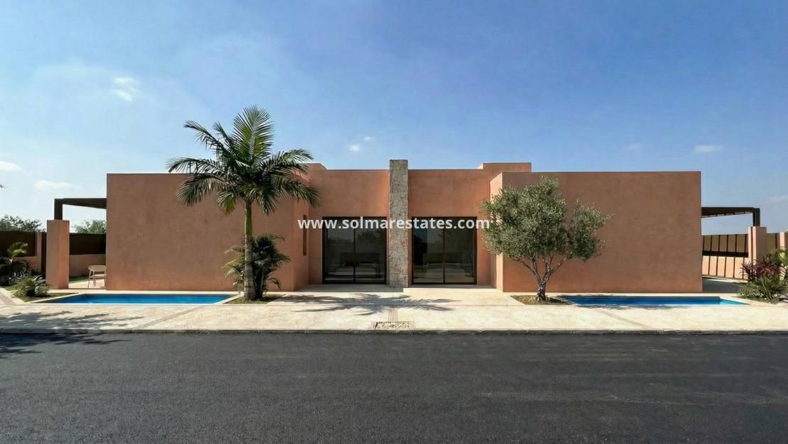 Nybyggda villor på El Alba Mediterranean Resort i Torre Pacheco Modernt boende i en växande turistort Upptäck detta exklusiva nybyggnadsprojekt bestående av endast 6 fristående och parhusvillor belägna på El Alba Mediterranean Resort i Torre Pacheco, Murcia. Detta uppåtgående bostadsområde kombinerar modern arkitektur, fritidsanläggningar och en avslappnad medelhavslivsstil. Beläget mellan golfklubben Terrazas de la Torre och staden Roldán erbjuder läget lugn och ro utan att man behöver avstå från närheten till alla nödvändiga bekvämligheter, såsom stormarknader, restauranger, barer och banker. Moderna villor med privat utomhusutrymme Dessa moderna villor är planerade i en våning och har 2 sovrum och 2 badrum, varav ett är en-suite. Varje fastighet har ett öppet kök och vardagsrum, utformat för att maximera naturligt ljus och komfort. Hörntomterna har en privat trädgård med pool och parkeringsplats. Interiören är stilren och funktionell, vilket gör dessa fastigheter idealiska för permanent boende, semesterbruk eller som investering. Sovrummen är utrustade med inbyggda garderober med lådor, och badrummen levereras fullt utrustade med spegelskåp och duschväggar. Högkvalitativa specifikationer och ytbehandlingar Alla villor är byggda enligt hög standard med material och ytbehandlingar av högsta kvalitet. Köken är fullt utrustade med vitvaror, medan ytbehandlingar från Porcelanosa används i kök, badrum och kakel, vilket ger en lyxig känsla. Andra extrafunktioner inkluderar fönster och dörrar med termisk isolering och dubbelglas, motoriserade persienner i sovrummen och förinstallation för luftkonditionering. Anläggningens faciliteter och lokala bekvämligheter Alba Mediterranean Resort erbjuder ett utmärkt utbud av gemensamma faciliteter utformade för alla åldrar. Boende kan njuta av ett klubbhus med restaurang och chill-out-område, en gemensam pool, en bowlinghall, paddeltennisbanor och en lekplats. Ett litet köpcentrum är för närvarande under uppbyggnad inom anläggningen, vilket kommer att ge ytterligare bekvämlighet med butiker och tjänster nära hemmet. Utmärkt läge nära golfbanor, stränder och flygplatser Komplexet är omgivet av flera prisbelönta golfbanor, vilket gör det till ett attraktivt alternativ för golfentusiaster. Stränderna vid Mar Menor ligger cirka 15 km bort och erbjuder lugnt vatten och ett brett utbud av vattensporter. Murcias internationella flygplats ligger bara 20 km bort, medan Cartagena ligger cirka 30 km bort och staden Murcia cirka 40 km. Alicante flygplats ligger cirka 90 km bort. Enkel tillgång till motorvägsnätet möjliggör snabba och bekväma resor i hela regionen. Ditt nya hem på Costa Cálida Dessa nybyggda villor på El Alba Mediterranean Resort erbjuder utmärkt valuta för pengarna, modern design och ett strategiskt läge nära golfbanor, stränder och bekvämligheter. Kontakta oss idag för mer information eller för att boka en visning och säkra din plats i detta spännande nya projekt i Torre Pacheco.