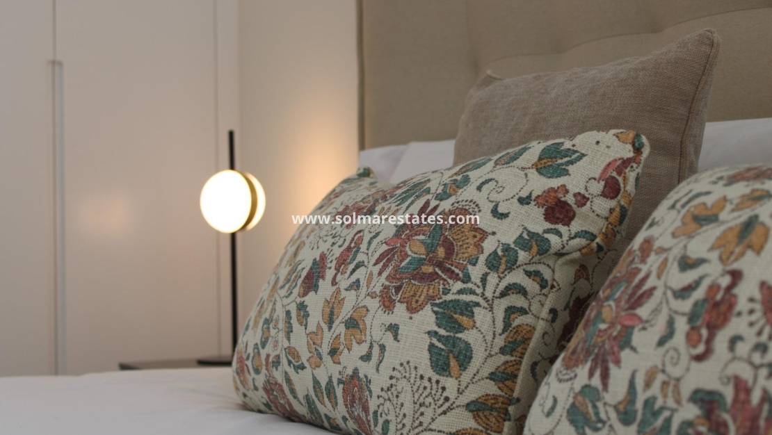 Exklusiva nybyggda villor 300 m från stranden i Torre de la Horadada Lyxigt kustliv i ett utmärkt läge Upptäck detta exklusiva nybyggnadsprojekt i Torre de la Horadada, en av de mest eftertraktade kuststäderna i södra Alicante. Dessa villor ligger bara 300 m från Medelhavet och inom gångavstånd från butiker, restauranger och dagliga tjänster, och erbjuder en exceptionell möjlighet att njuta av Costa Blancas livsstil. Torre de la Horadada är känt för sin avslappnade atmosfär, vackra strandpromenad och fina sandstränder, vilket gör det idealiskt för både permanent boende och semesteranvändning. Sista nyckelfärdiga villan fullt utrustad Detta boutique-projekt består av endast fyra fristående villor, varav den sista enheten är nyckelfärdig och fullt möblerad. Villan levereras komplett med möbler, vitvaror och luftkonditionering, så att du kan flytta in omedelbart och börja njuta av ditt nya hem vid havet. Villan ligger på en privat tomt på cirka 207 m2 och erbjuder cirka 130 m2 boyta fördelat på bottenvåningen, första våningen och ett privat solarium på taket. Modern design med privat pool och solarium Villan har en modern design med öppna och ljusa utrymmen. Inuti hittar du tre rymliga sovrum och tre badrum, ett vardagsrum med matplats och öppet kök, samt direkt tillgång till trädgården och den privata poolen. Solterrassen på taket är en idealisk plats att koppla av, sola eller njuta av den öppna utsikten, vilket skapar ett perfekt utomhusvardagsrum året runt. Högkvalitativa specifikationer och komfort Fastigheten är byggd enligt höga standarder och har en förstärkt entrédörr, motoriserade fönsterluckor i sovrummen, en privat pool och ett grundläggande hemautomatiseringssystem för elektronisk styrning. Luftkonditionering med kanaler är fullt installerad, vilket garanterar komfort under alla årstider. En privat parkeringsplats på tomten ger extra bekvämlighet och säkerhet. Torre de la Horadada och omgivningar Torre de la Horadada erbjuder en charmig kustmiljö med en lång strandpromenad, småbåtshamnar och ett brett utbud av restauranger, barer och lokala butiker. De närliggande stränderna Torre de la Horadada och Mil Palmeras är bland de bästa i området, perfekta för simning, vattensporter, snorkling och dykning. Området har bra förbindelser och är omgivet av golfbanor, shoppingcenter och fritidsaktiviteter. Avstånd till viktiga sevärdheter Stranden: 0,3 km Shoppingområdet Plaza Nueva: 0,2 km Lo Romero Golf: 7 km Marinan i Torre de la Horadada: 1,5 km Murcia Corvera flygplats: 45 km Alicante flygplats: 50 km Ditt nya hem vid Medelhavet väntar Denna nyckelfärdiga villa i Torre de la Horadada är ett unikt tillfälle att äga ett modernt hem bara några steg från stranden. Kontakta oss idag för att boka en visning och säkra denna exceptionella nybyggda villa på Costa Blanca.