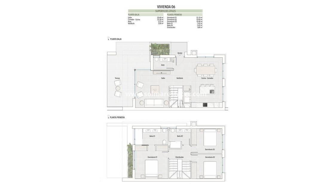 Dessa villor är byggda med högkvalitativa material och den senaste tekniken för att säkerställa komfort och effektivitet. Detaljerna inkluderar förinstallation för kanaliserad luftkonditionering, aerotermiskt system för varmvatten, golvvärme i badrummen och elektriska fönsterluckor.