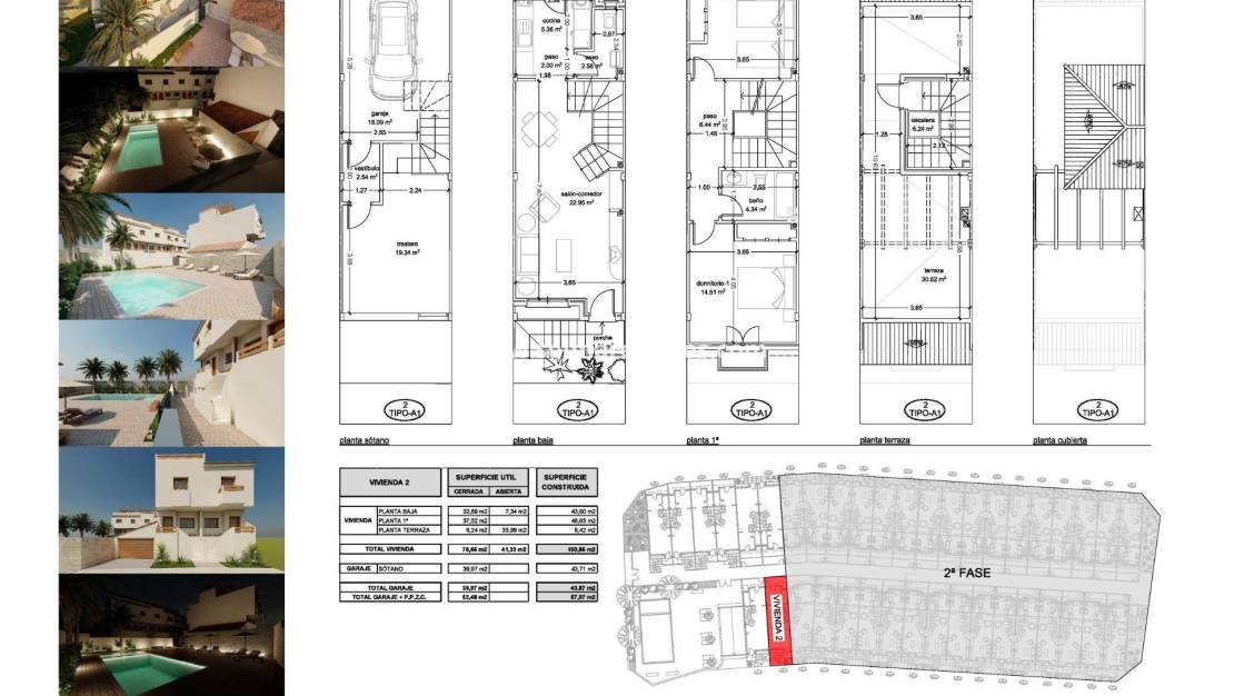 Nybyggda radhus med havsutsikt i Portman Murcia Exklusivt boende i Portman Bay Detta exklusiva bostadsområde med 39 nybyggda radhus ligger på en höjd i Portman och erbjuder panoramautsikt över Medelhavet och den vackra Portman Bay. Dessa bostäder ligger bara 1,6 km från stranden och är utformade för att omfamna den autentiska medelhavslivsstilen i en lugn och privilegierad naturmiljö. Portman är en charmig kuststad omgiven av skyddande berg och öppen mot havet, med sydläge och milda temperaturer året om. Området är idealiskt för friluftsentusiaster, med vandrings- och mountainbikeleder, kristallklart vatten för bad och en avslappnad atmosfär som är perfekt för att koppla av. Samtidigt ligger det bara 15 minuter med bil från Cartagena, där du hittar shoppingcenter, sjukhus, kulturella attraktioner och en livlig småbåtshamn. Moderna radhus med 2 och 3 sovrum och privat solarium Bostadsområdet erbjuder radhus med 2 och 3 sovrum, 1 komplett badrum och 1 gästtoalett, fördelade på 3 eller 4 våningar plus ett privat solarium på taket. Varje fastighet har noggrant utformats för att maximera komfort, funktionalitet och naturligt ljus. Från ditt privata solarium kan du njuta av 360 graders utsikt över havet och det omgivande landskapet, vilket skapar en unik plats för avkoppling, solbad eller underhållning. Högkvalitativa specifikationer och praktiska utrymmen Dessa nybyggda bostäder levereras med högkvalitativa material och modern finish, inklusive: Moderna kök utrustade med vitvaror från ledande varumärken Pansrad entrédörr Badrum med tvättställ, speglar, duschväggar och elektriska handdukstorkar Aerotermiskt system för varmvatten Förinstallation för split-luftkonditioneringsenheter Rymligt privat underjordiskt garage och förråd Stora förrådsutrymmen erbjuder perfekt plats för cyklar, strandutrustning eller dykutrustning, vilket gör dessa bostäder perfekta för dem som gillar de många utomhusaktiviteter som finns i regionen. Gemensamma utrymmen för avkoppling och socialt umgänge Bostadsområdet har anlagda trädgårdar och en gemensam pool, vilket ger boende en bekväm och säker miljö att koppla av och njuta av tiden med familj och vänner. Avstånd till viktiga sevärdheter Stranden 1,6 km Cartagena 15 km La Manga Club Golf 12 km Cartagenas hamn 15 km Murcias internationella flygplats 35 km Alicantes flygplats 120 km Upptäck din medelhavslivsstil i Portman Oavsett om du letar efter en permanent bostad eller ett semesterhus vid havet, erbjuder dessa radhus i Portman utsikt, komfort och en exceptionell naturmiljö. Kontakta oss idag för att få mer information eller för att boka en visning av detta enastående nya bostadsområde.