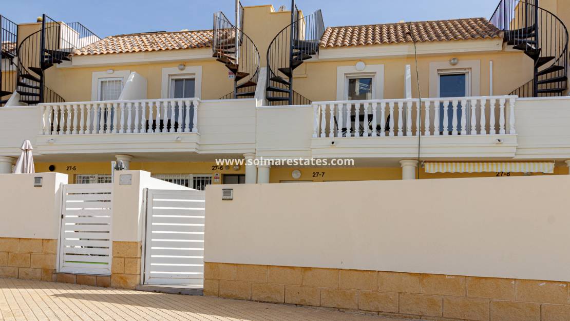 Detta vackert presenterade radhus med två fasader är perfekt beläget i ett säkert och välskött bostadsområde i Lomas de Cabo Roig.