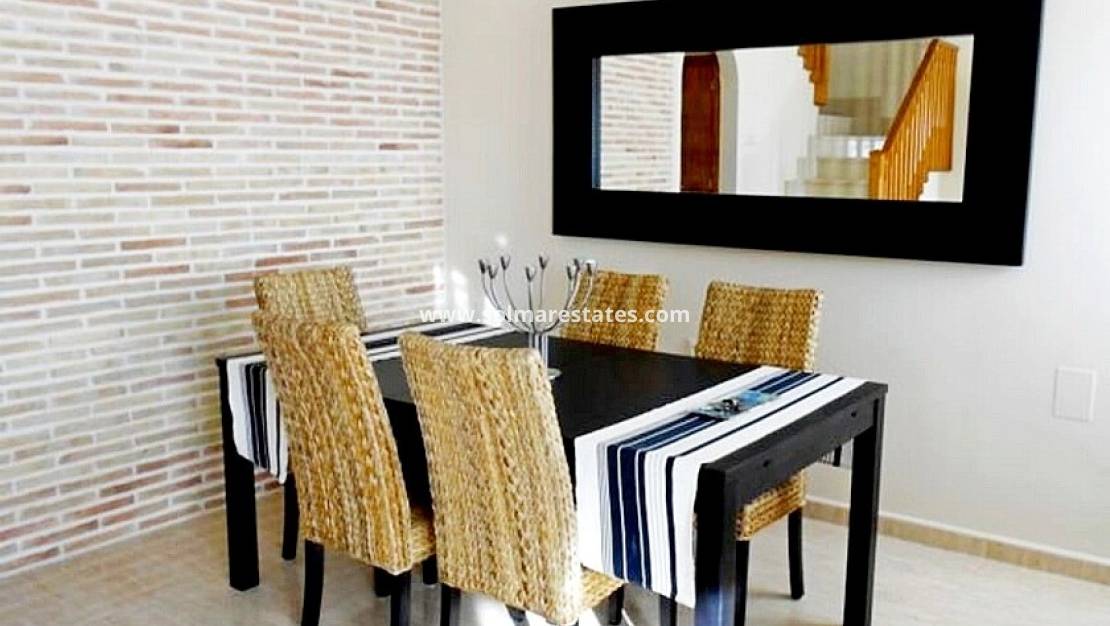 Radhus med 3 sovrum intill stranden Higuericas i La Torre de la Horadada. Radhus med 3 sovrum 200 meter från stranden Higuericas i La Torre de la Horadada. Detta halvnya hem har en stor framträdgård och privat solarium med havsutsikt, samt en gemensam pool och trädgårdar. Den säljs utrustad med vitvaror och varm-kall luftkonditionering. Några minuter från affärer, restauranger, kaféer, stormarknader och andra tjänster. 15 minuter med bil till Zenia Boulevard eller Dos Mares köpcentrum i San Javier, en halvtimme till Murcia flygplats, en timme till Alicante.