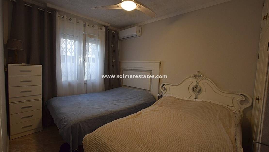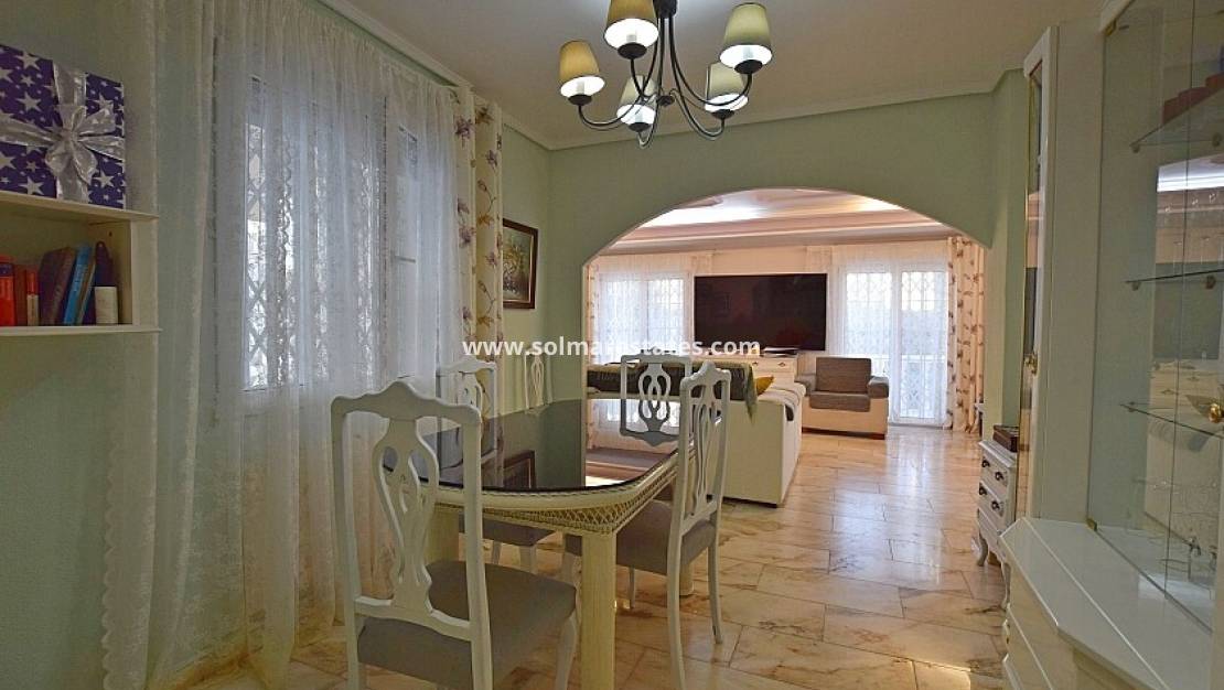 Rymlig 3-rumsvilla och gäststuga nära havet i Torrevieja. Rymlig 3-sovrumsvilla med pensionat nära stranden Los Locos i Torrevieja Detta hus har 3 sovrum och 2 badrum, vardagsrum med öppen spis, två terrasser, privat pool, centralvärme och bakgård med flera förråd. Här finns även en gäststudio med vardagsrum och kök. Hela huset är anlagd, med en grill. Några meter från stranden, restauranger, caféer, kollektivtrafik och annan service.