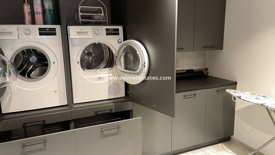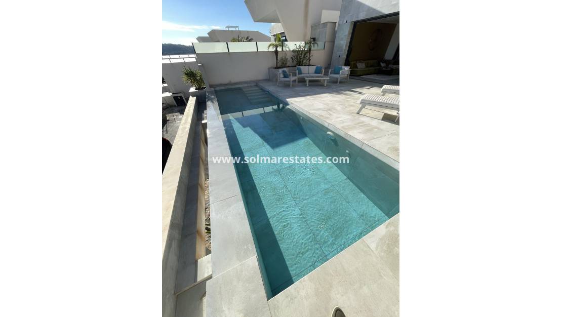 Du kommer in i det rymliga vardagsrummet med vackert kök i öppen planlösning som mynnar ut i den stora terrassen med stor infinitypool, där du kan njuta av den otroliga utsikten. Dessutom har du också två rymliga sovrum, båda med eget badrum. Den yttre trappan leder till solariet, där du kan njuta av Costa Blancas magi!